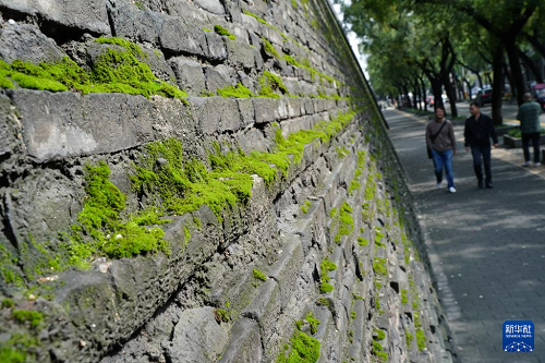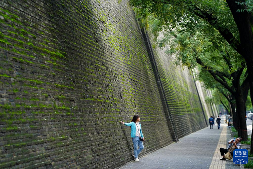 西安城墻始建于隋唐、擴(kuò)建于明代,是中國現(xiàn)存歷史最悠久、保存最完整的古代城垣建筑。連綿秋雨過后,苔蘚等植物為西安城墻披上了一層綠色的外衣,吸引市民和游人駐足觀看、拍照。