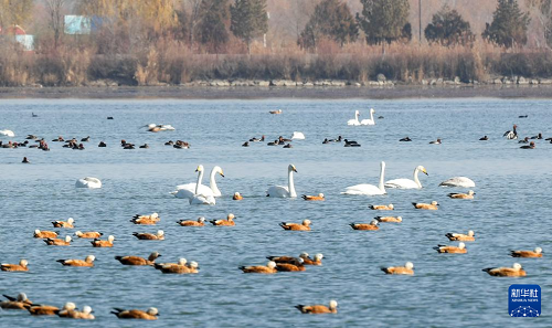 入冬以來,大批候鳥陸續(xù)飛抵位于甘肅省張掖市的張掖黑河濕地國家級自然保護(hù)區(qū)高臺段休憩覓食。作為全球9條候鳥遷徙通道之一的中亞通道的重要中轉(zhuǎn)站,每年約有18萬至25萬只水禽在張掖黑河濕地國家級自然保護(hù)區(qū)集結(jié)、停歇。