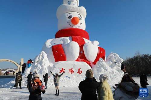 12月9日,第38屆太陽島雪博會標(biāo)志性雪塑景觀“雪人先生”在哈爾濱太陽島風(fēng)景區(qū)正式亮相。“雪人先生”高23.8米,用雪量達(dá)5000立方米。