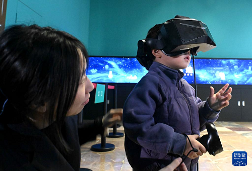 1月13日,小朋友在河北博物院數(shù)字互動體驗展中體驗互動。(新華社發(fā) 陳其保 攝)
