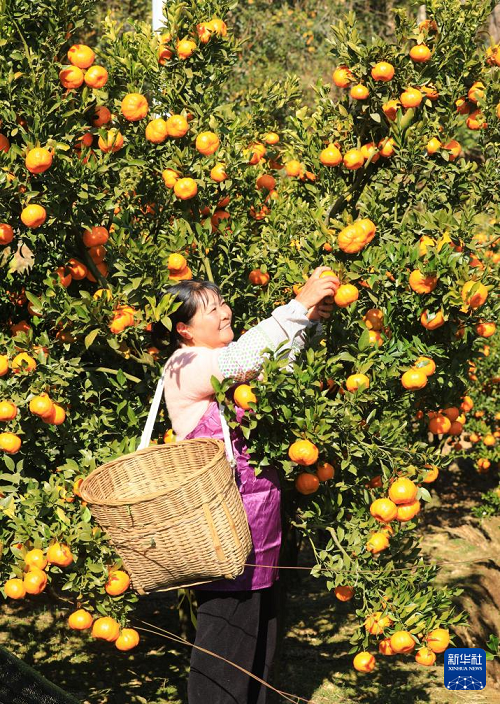 1月20日,果農(nóng)在云南省騰沖市五合鄉(xiāng)半山橘園采摘柑橘。(新華社發(fā) 龔祖金 攝)