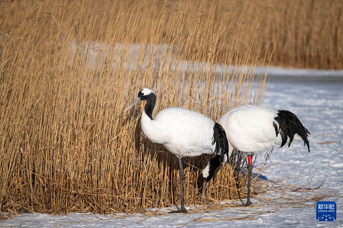 冬日時節(jié),黑龍江扎龍國家級自然保護區(qū)內(nèi)白雪皚皚,丹頂鶴在寒風中覓食,上演一幅鶴舞冬日的純凈畫面。