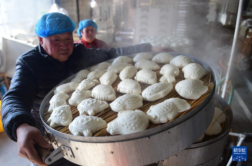 進(jìn)入臘月,河北滄州部分鄉(xiāng)村的面花作坊進(jìn)入生產(chǎn)旺季,人們忙著制作各種形狀的面花供應(yīng)市場。面花是一種用模子塑形加工后蒸制的特色面食,有魚、壽桃、十二生肖等造型,是當(dāng)?shù)卮汗?jié)期間的特色食品,經(jīng)過揉面、搕花、晾花、蒸花等十多道工序制作而成。