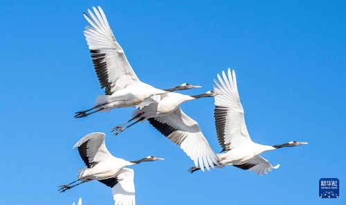 1月22日在黑龍江扎龍國家級(jí)自然保護(hù)區(qū)拍攝的丹頂鶴。(新華社發(fā) 何華文 攝)