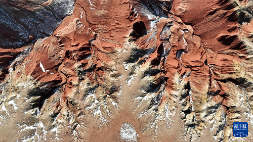 這是1月29日在內(nèi)蒙古烏蘭察布市四子王旗拍攝的紅崖臺地景觀(無人機(jī)照片)。(新華社記者 馬金瑞 攝)