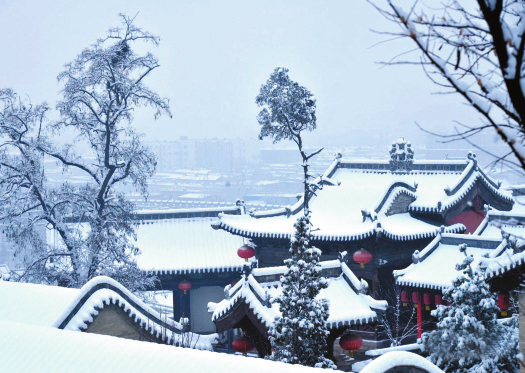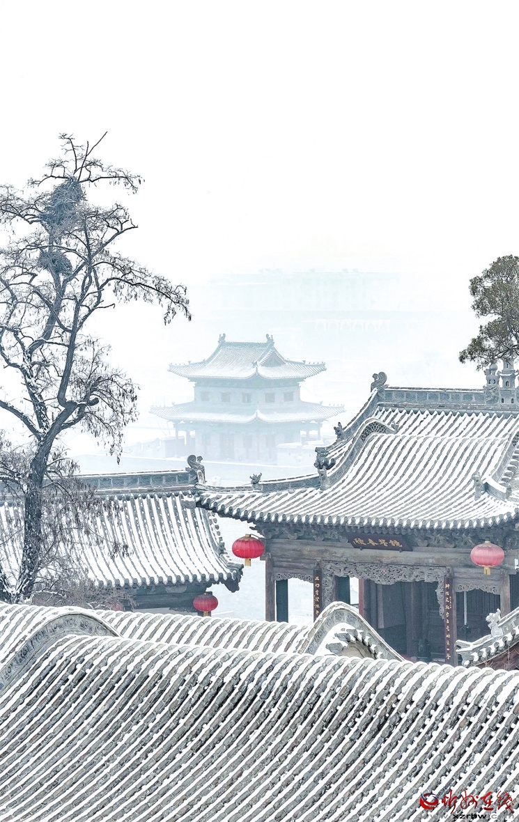冬天一定要來忻州古城,因?yàn)檫@里的風(fēng)光大不一樣——它寒冷、莊嚴(yán),與遠(yuǎn)處的系舟山連成一片,煙波朦朧;它黯淡、粗獷,與整個(gè)北方的豪邁自成一體,氣勢磅礴。它就像這雪,能給人帶去希冀。雪安,忻州古城。