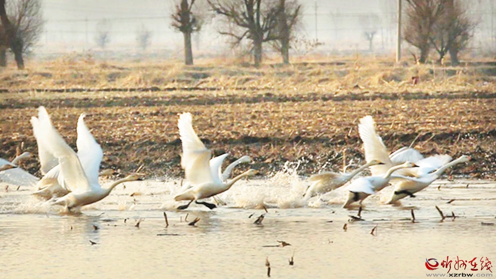 近日,在定襄縣受祿鄉(xiāng)附近的一片水域內(nèi),成群的天鵝擇水而棲,有的展翅秀舞姿,有的追逐互嬉戲。白羽翩翩,優(yōu)雅靈動,成為一道亮麗的風景。 據(jù)了解,天鵝主要棲息于海岸、湖泊等水域,成對或結(jié)群活動,以各種水生植物和藻類為食,而且,天鵝對棲息地生態(tài)環(huán)境要求極高,一般選擇無污染、食物充足的濕地作為棲息地。近年來,我市持續(xù)加大生態(tài)建設(shè)力度,不斷改善生態(tài)環(huán)境,滹沱河、雙乳湖等地,都已經(jīng)成為多種鳥類遷徙的中轉(zhuǎn)站和棲息地。(郭耀華 攝) (責任編輯:盧相汀) |