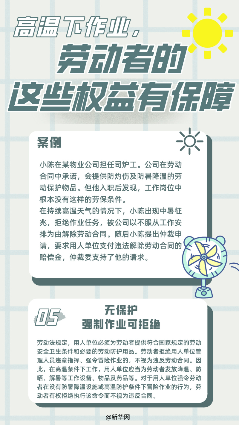 各地高溫來襲,許多戶外工作者依舊頂著烈日堅守在工作崗位上。向他們致敬的同時,也應(yīng)關(guān)注高溫作業(yè)勞動者應(yīng)當(dāng)享有哪些勞動權(quán)益?本期以案“視”法用以下6個案例為大家解析。