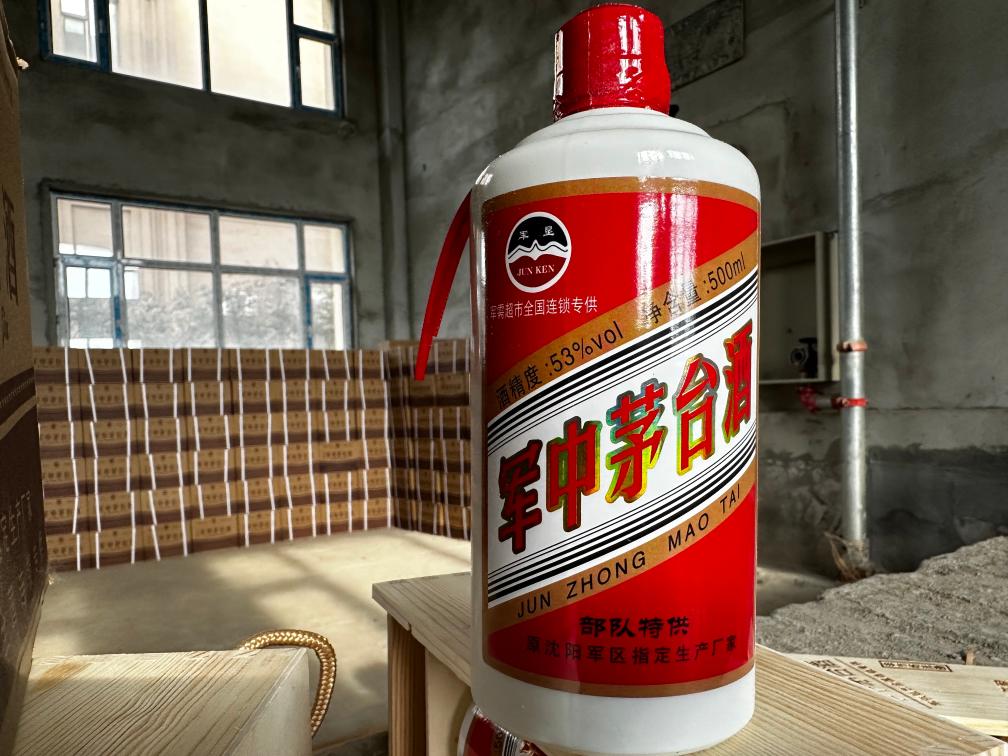 一架騰空而起的戰(zhàn)斗機(jī)圖案取代了飛天女神圖案,包裝盒上赫然印著“部隊(duì)專用”字樣……看起來頗像“茅臺(tái)”的“特供酒”,實(shí)際上沒一瓶是真的。