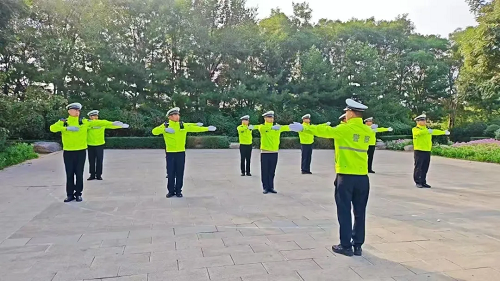 “嘀——”,清脆的哨聲劃破寧?kù)o,忻州交警全體人員迅速集結(jié)列隊(duì),以飽滿的熱情和堅(jiān)定的步伐,開(kāi)始了新一天的晨操晨訓(xùn)?!跋蛴铱待R,向前看!”“報(bào)數(shù)!”在建設(shè)路與雁門(mén)大道路口、建設(shè)路與長(zhǎng)征街路口、七一路與長(zhǎng)征街路口……著裝整齊的交警們正在進(jìn)行規(guī)范的手勢(shì)訓(xùn)練和正步練習(xí),充滿活力的“熒光綠”“警察藍(lán)”成為了忻州街頭一道亮麗風(fēng)景線。這是忻州市公安局黨委為了提升交警隊(duì)伍的士氣和戰(zhàn)斗力,堅(jiān)持練兵日?;?、制度化、實(shí)戰(zhàn)化的一項(xiàng)重要舉措。
