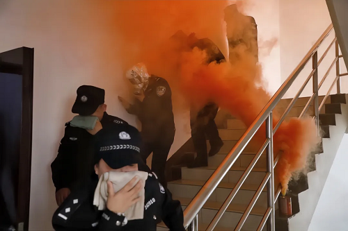 在應(yīng)急疏散演練環(huán)節(jié),隨著警報(bào)響起,干警們按照預(yù)定方案進(jìn)入應(yīng)急疏散狀態(tài),大家捂住口鼻、俯身彎腰,沿著安全通道有序撤離至安全區(qū)域。演練過程中,干警們表現(xiàn)出了高度的紀(jì)律性和團(tuán)隊(duì)協(xié)作精神,整個(gè)疏散過程迅速而有序,達(dá)到了預(yù)期演練效果。