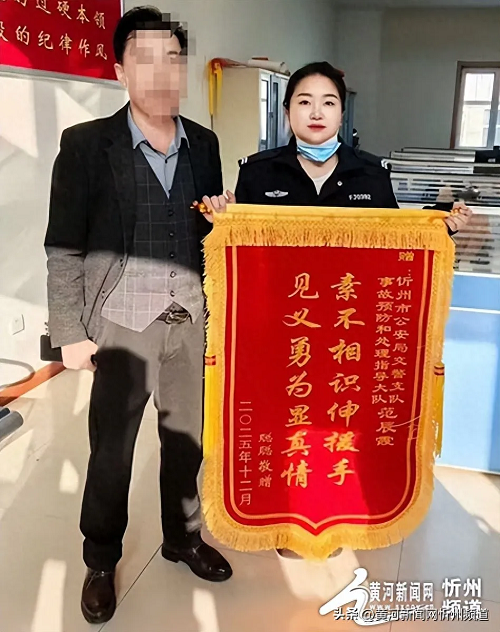 12月16日晚,一名市民因飲酒過量倒在雪夜路旁,幸得忻州市公安局交管支隊事故預(yù)防和處理指導(dǎo)大隊輔警范辰霞及時發(fā)現(xiàn)并救助,最終化險為夷。12月22日,獲救市民專程送來錦旗,向危難時刻伸出援手的交警同志表達謝意。
