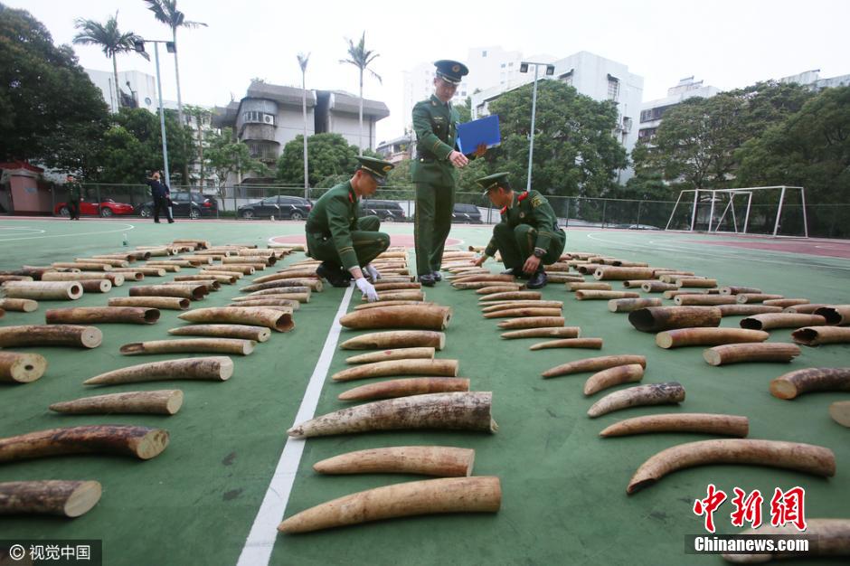 3月21日,廣東公安邊防總隊(duì)正式對外通報(bào)稱,珠海市邊防支隊(duì)成功破獲一起特大涉嫌走私象牙案,查獲走私象牙221塊,共計(jì)約450千克,市值1800萬元人民幣,這是近年來全國邊防部門查獲的最大宗走私象牙案。圖片來源:視覺中國