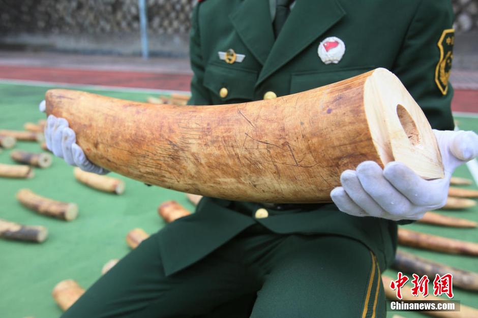 此時(shí),嫌疑快艇非但不配合,反而加速逃逸。經(jīng)過一路的追擊,嫌疑快艇最終在淇澳島大澳灣沖灘,緊隨其后的執(zhí)勤官兵快速對(duì)現(xiàn)場(chǎng)進(jìn)行了封鎖勘查。經(jīng)查,在嫌疑快艇的船艙及附近岸邊散落有用蛇皮袋和膠紙緊裹的紙箱,經(jīng)清點(diǎn),在紙箱內(nèi)發(fā)現(xiàn)夾藏的象牙共計(jì)221塊,總重約450千克。圖片來源:視覺中國(guó)