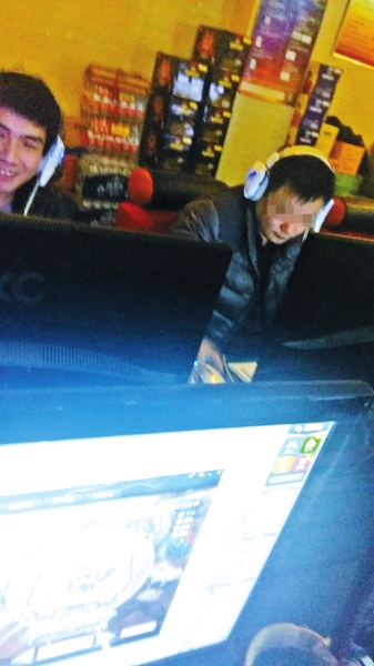 警方在連云港一家網(wǎng)吧排查時(shí)發(fā)現(xiàn)嫌疑人(右)