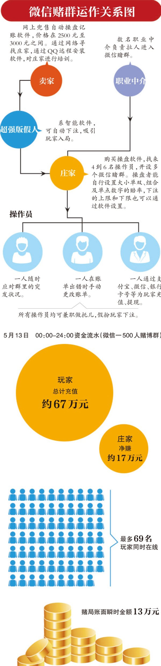6月12日,某報記者臥底微信賭場的報道給人們揭開了“微信賭場”的可怕內幕:開一局只需5分鐘,下注、開局、下注……賭局像車輪滾動,你甚至來不及眨幾下眼,也不知道錢輸給了誰,成千上萬賭資就已蒸發(fā)。一位賭徒這樣描述,“血淋淋的,押下去是一串沒有感覺的數字,玩完才發(fā)現(xiàn)輸了一大筆,這比現(xiàn)實中的賭場恐怖太多。”