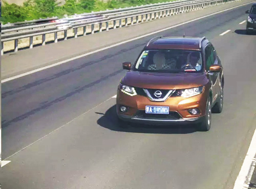 6月16日8時(shí)46分,一輛牌照為晉A××××的棕色尼桑小轎車行駛至G20高速955KM+270M處時(shí),被監(jiān)控設(shè)備抓拍下來。圖像顯示,該車身著白色上衣的駕駛?cè)苏糜沂纸勇犽娫?,并且沒有系安全帶。
