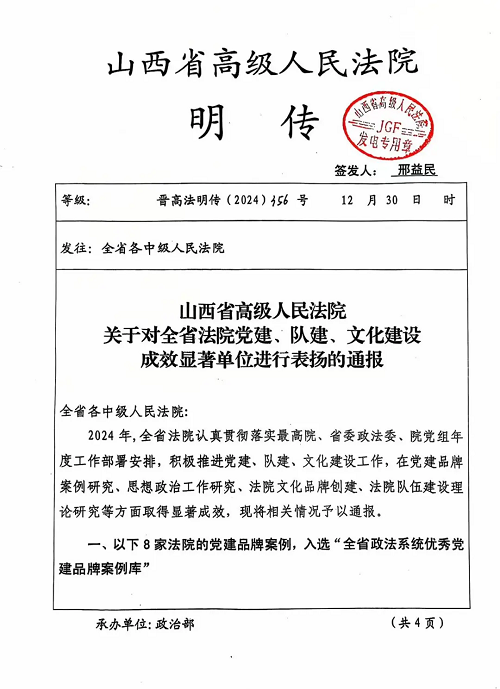 中共忻州市中級(jí)人民法院機(jī)關(guān)黨委會(huì)