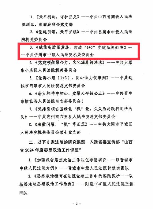 《賦能高質(zhì)量發(fā)展——忻州中院打造“1+5”黨建品牌矩陣》