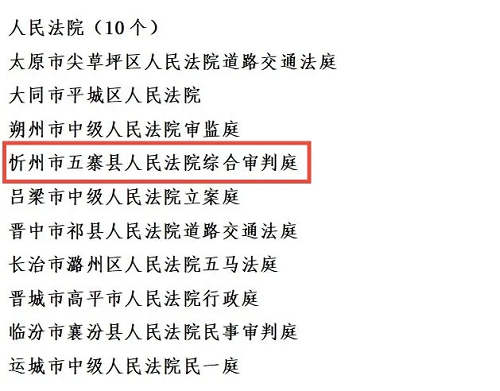 為充分發(fā)揮先進典型的示范引領(lǐng)作用,持續(xù)推進交通事故重傷員“預擔保、快搶救、后付費”無差別急救綠色通道機制,表揚先進、鼓舞士氣,近日,山西省道路交通事故社會救助基金管理聯(lián)席會議決定,對39個先進單位和117名先進個人予以通報表揚。其中,五寨縣人民法院綜合審判庭被評為山西省道路交通事故社會救助基金管理先進單位,忻州中院環(huán)資庭法官助理孫睿彬、忻府區(qū)法院董村法庭庭長蘇金霞被評為山西省道路交通事故社會救助基金管理先進個人。