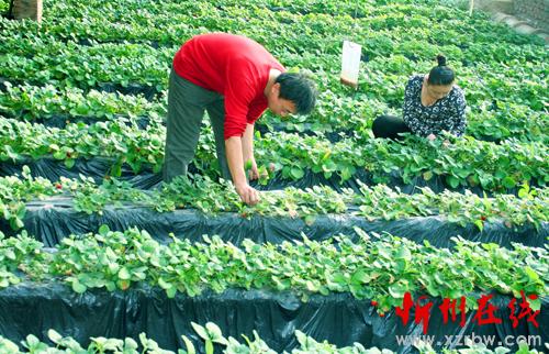 2月4日,原平市柳巷村農(nóng)民岳彬彬正在進(jìn)行草莓管理,新春佳節(jié)期間為觀光 游人們開園采摘。該市積極引導(dǎo)農(nóng)民大力發(fā)展觀光生態(tài)旅游農(nóng)業(yè),已成為農(nóng)民增收致富的新亮點,加快了奔小康的步伐。(趙春曉 攝)
