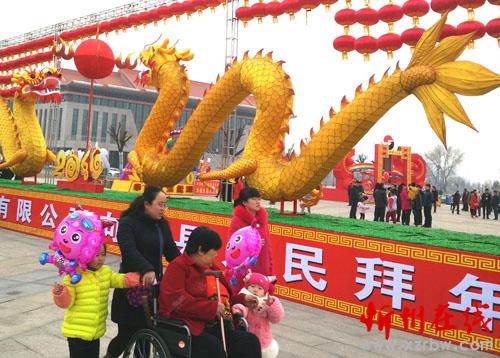2月15日,河曲縣臨隩公園內(nèi)張燈結(jié)彩,歡樂祥和,一位行走不便的老人坐著輪椅在家人的陪護(hù)下游園觀燈?!皟晒?jié)”期間,這里由晉神能源、山西同德化工等九家駐河曲大企業(yè)制作的”展望十三五,全面建小康“企業(yè)形象宣傳燈展,吸引了觀眾眼球,各式彩燈造型新穎,栩栩如生,為節(jié)日增添了濃厚的喜慶氛圍。(鄔耿杰 攝)