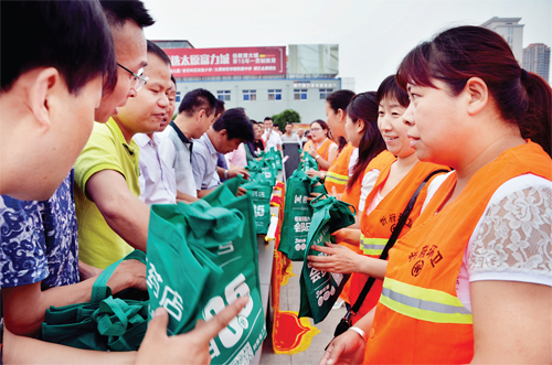 本報訊 6 月26 日下午,忻州市吉達惠康藥業(yè)攜手仁和中方藥業(yè)、廣州白云制藥、太極集團、東方慧醫(yī)等單位,在城區(qū)體育廣場舉行了“夏日送清涼,關(guān)愛環(huán)衛(wèi)者”活動,為每位環(huán)衛(wèi)工人準備了2 盒阿莫西林、1 包防暑茶、1 盒藿香正氣口服液、1 支護手霜、防1 個霧霾口罩等防暑品,共1000 余份,價值6 萬余元。