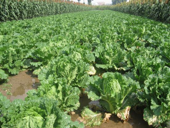 河曲縣南元村回茬大白菜,是晉陜蒙三角地區(qū)頂呱呱的招牌菜;每到晚秋,開(kāi)車直接到地里買菜的縣內(nèi)外群眾絡(luò)繹不絕。入秋以來(lái),菜農(nóng)在鋤草、施肥、澆水、打藥等多個(gè)環(huán)節(jié)進(jìn)行科學(xué)管理,精心呵護(hù),力求大白菜個(gè)頭大、包心實(shí)、賣相好、收入高。圖為剛剛澆過(guò)水的大白菜,葉子間還閃著水光呢。(賈金理 攝)