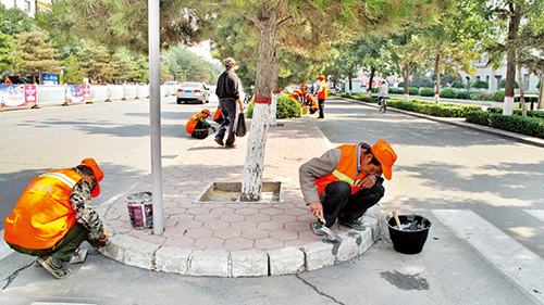9月15日,正值中秋佳節(jié),市政工程公司員工放棄休息,在長征街修補路牙石,為我市城區(qū)創(chuàng)建國家衛(wèi)生城市盡自己的職責