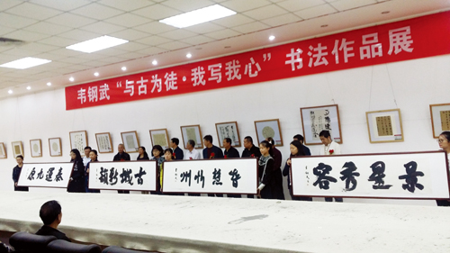本報(bào)訊 9月19日,由市書(shū)協(xié)、五臺(tái)山書(shū)畫(huà)院共同舉辦的韋鋼武寫(xiě)忻州書(shū)法展在五臺(tái)山書(shū)畫(huà)院開(kāi)展。市政協(xié)副主席賈玉文,原忻州市委常委、宣傳部長(zhǎng)周如璧,著名書(shū)法家陳巨鎖先生及我市200余名書(shū)畫(huà)愛(ài)好者出席了開(kāi)展儀式。