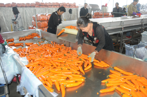豐收季節(jié),耀入眼簾的是一顆顆閃著金黃燦爛光芒的優(yōu)質(zhì)胡蘿卜,經(jīng)過(guò)流水作業(yè)清洗,由員工的巧手整理包裝入袋,經(jīng)包裝運(yùn)往江蘇等地,帶動(dòng)周邊地區(qū)近3000農(nóng)戶(hù)受益。圖為綠源亨通視頻有限公司胡蘿卜流水作業(yè)生產(chǎn)線。(喬偉 侯曉敏)