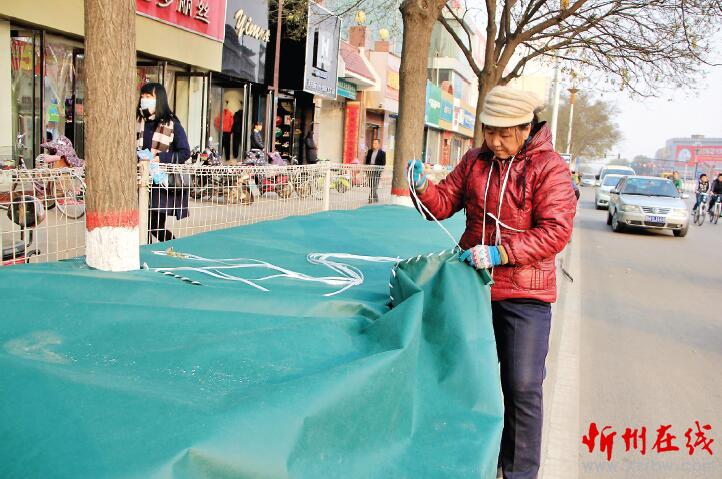 11月20日,原平市前進(jìn)大街的一群工作人員正在飛針走線,為街道兩旁的綠化帶縫棉被,助它們溫暖過冬。原平市加大城市綠化的同時(shí),采取多種措施保護(hù)綠色,分配包干,責(zé)任到人,責(zé)成專人進(jìn)行修剪、澆水,對越冬的綠化帶全部覆蓋防寒專用布,既美化了越冬綠化帶,又保護(hù)綠化帶不被損傷。(吉建平 攝)