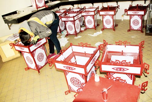 12月5日,原平市天牙山景區(qū)工作人員正在安裝新燈籠。此次天牙山景區(qū)將更換100 個已經(jīng)破損和陳舊的燈籠