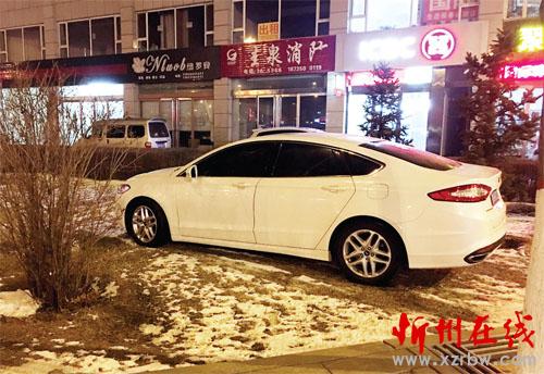 12月15日,記者途經(jīng)市區(qū)團(tuán)結(jié)西街和建設(shè)北路交叉路口,在東南角看到一輛白色轎車停在路邊的綠化帶上,碾壓草地,讓人心疼。
