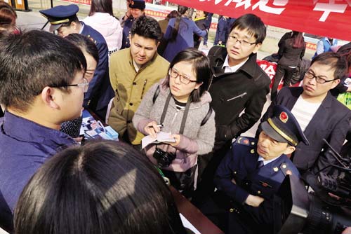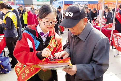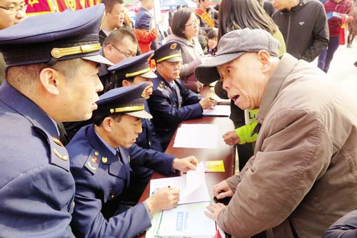 3月15日,忻州城區(qū)體育廣場上以“網絡誠信消費無憂”為主題的3·15國際消費者權益日宣傳活動火熱進行?;顒蝇F(xiàn)場,各部門和企業(yè)通過發(fā)放宣傳資料、設立咨詢臺、現(xiàn)場受理群眾投訴舉報、提供服務等方式,宣傳《消費者權益保護法》、《反不正當競爭法》、《無照經營查處辦法》等法律法規(guī)以及食品藥品安全、識假辨假等各類知識,吸引了眾多群眾積極參與。受理投訴臺前,陸續(xù)有消費者前來投訴,且有不少年輕人,所反映的問題既有涉及家具、汽車等金額較大的線下消費活動,也有通過電商平臺進行的線上交易。市工商局、消費者協(xié)會的工作人員將消費者投訴的問題一一記錄在冊,并表示會盡快調查處理。本版圖片攝影 魯明強 王 菲