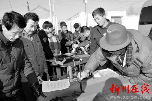 書法志愿者為村民書寫對聯(lián)