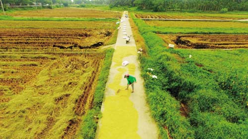 5月21日,海南省瓊海市嘉積鎮(zhèn)橋頭村農(nóng)民在曬谷子。當(dāng)日是二十四節(jié)氣中的小滿,各地農(nóng)民抓時令忙生產(chǎn),田間地頭一派繁忙。據(jù)新華社 蒙鐘德 攝