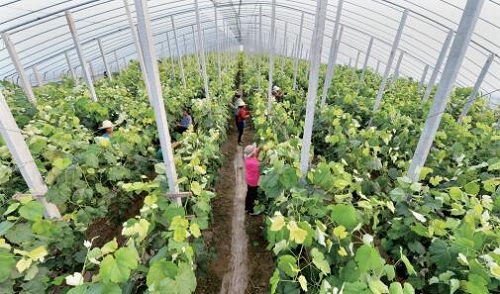 前幾年,定襄的設(shè)施農(nóng)業(yè)種植分散、設(shè)施條件差、收益低。受祿鄉(xiāng)在發(fā)展設(shè)施農(nóng)業(yè)的過(guò)程中總結(jié)出了“支部引領(lǐng),村委支持,黨員帶頭,群眾跟進(jìn),吸納貧困戶(hù)”的經(jīng)驗(yàn)并在全縣起到示范作用。建規(guī)模園區(qū)土地流轉(zhuǎn)首當(dāng)其沖,受祿鄉(xiāng)在流轉(zhuǎn)土地的時(shí)候,采取“農(nóng)民報(bào)名,統(tǒng)一規(guī)劃,簽訂合同”的辦法。流轉(zhuǎn)集中的土地,各村負(fù)責(zé)“三通一平”。定襄的設(shè)施農(nóng)業(yè),已經(jīng)從以前的改良式塑料大棚,發(fā)展到現(xiàn)在廣泛推廣的下凹式日光溫室和全鋼架春秋大棚,棚內(nèi)作物也實(shí)現(xiàn)了由普通蔬果到甜瓜、草莓、西蘭花等“新特優(yōu)”產(chǎn)品的轉(zhuǎn)型。