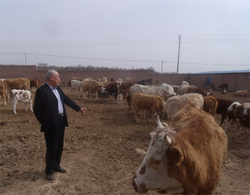 站在牛群中,老劉身形高大,一副“牛司令”的派頭。他看看這頭牛,又摸摸那頭牛,指著一頭黃白花色的牛說:“這叫西蒙達爾牛,原產(chǎn)于瑞士西部的阿爾卑斯山區(qū)。這頭體型高大的牛叫夏洛萊,原產(chǎn)于法國中西部到東南部地區(qū),是舉世聞名的大型肉牛品種,生長快、肉量多、耐粗放,很受國際市場歡迎?!?/p>