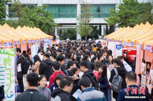 資料圖:沈陽(yáng)師范大學(xué)2019屆畢業(yè)生春季大型就業(yè)雙選會(huì)。中新社記者 于海洋 攝
