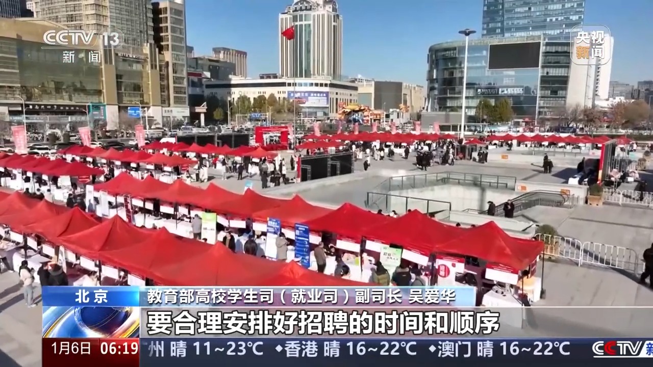 教育部高校學(xué)生司(就業(yè)司)副司長(zhǎng) 吳愛華:大學(xué)生比較關(guān)心的首先是政策性崗位,要合理安排好招聘的時(shí)間和順序,公務(wù)員、事業(yè)單位、國(guó)有企業(yè),還有軍隊(duì)的征兵入伍、基層項(xiàng)目等,政策性的崗位能招盡招,能早招,盡量早一點(diǎn)招,這樣給畢業(yè)生到市場(chǎng)上的求職留出足夠的時(shí)間。