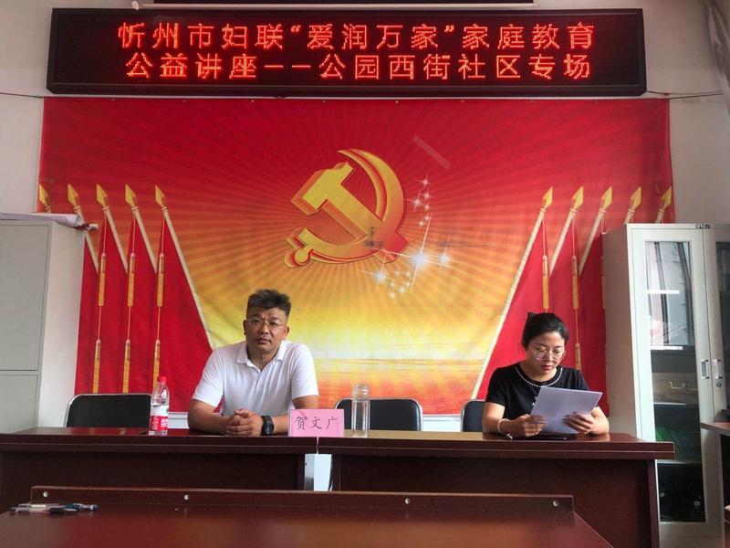 7月22日下午,忻州市長征小學(xué)組織三年級(jí)30余名學(xué)生家長在世紀(jì)花苑物業(yè)三樓參加了由忻州市婦聯(lián)組織的“愛潤萬家”家庭教育公益講座,講座由心理學(xué)研究中心賀文廣會(huì)長主持。