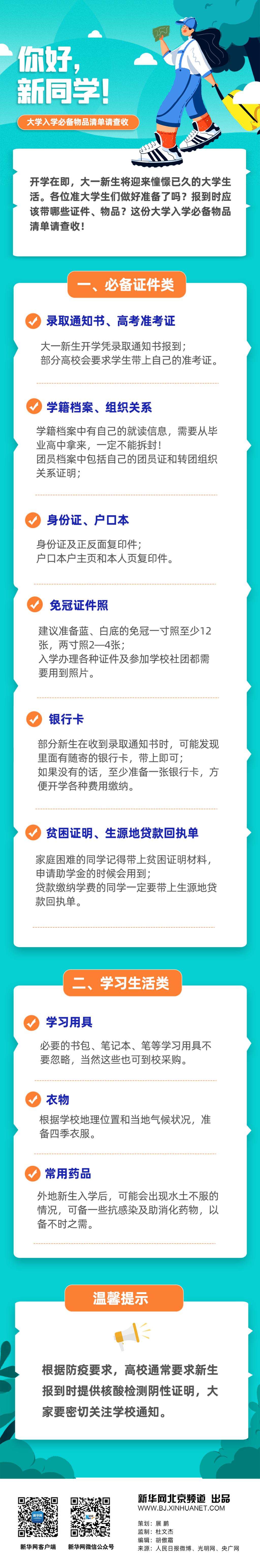你好,新同學(xué)!大學(xué)入學(xué)必備物品清單請(qǐng)查收