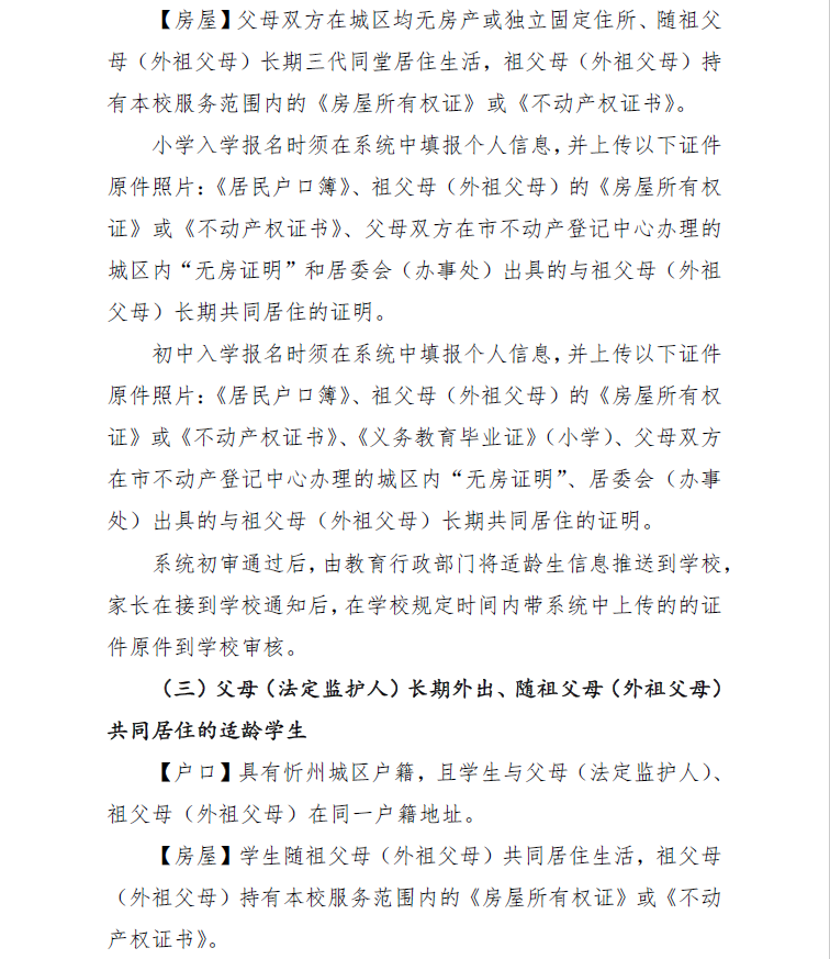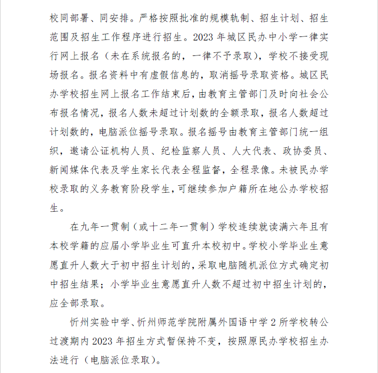 (四)8月8日,忻州市教育局統(tǒng)一組織忻州市北方中學(xué)、忻州現(xiàn)代雙語學(xué)校、忻州市康樂小學(xué)、忻州師范學(xué)院附屬外國語中學(xué)、忻州實驗中學(xué)五所學(xué)校進行搖號,并及時公布錄取結(jié)果。8月9日至10日,辦理入學(xué)手續(xù)。