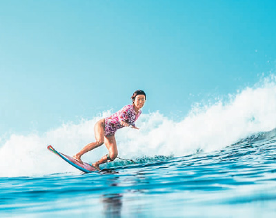 從2017年年初第一次接觸沖浪開始,張菘蓓就喜歡上了這項(xiàng)充滿刺激與挑戰(zhàn)的水上極限運(yùn)動(dòng)。在瞬息萬(wàn)變的大海里,沖浪者等待著最好的時(shí)機(jī)抓浪,即便是久經(jīng)風(fēng)浪的好手,也免不了時(shí)不時(shí)被浪頭“揍一頓”。這是一項(xiàng)人與自然始終處于互動(dòng)中的運(yùn)動(dòng),沖浪者勇搏風(fēng)浪,尋找或長(zhǎng)或短的掌控力。