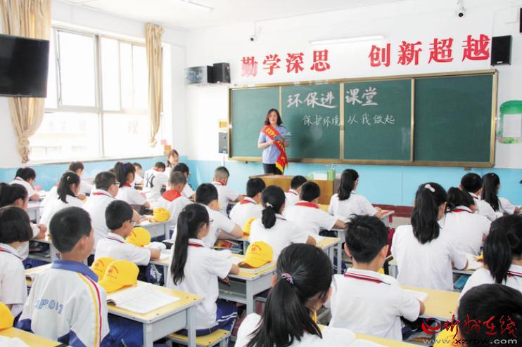 五臺(tái)縣實(shí)驗(yàn)小學(xué)以“勤學(xué)深思、創(chuàng)新超越”為教學(xué)方向,定期邀請(qǐng)忻州市生態(tài)環(huán)境局五臺(tái)分局的干部,登上講臺(tái)向?qū)W生講解《中華人民共和國環(huán)境保護(hù)法》和《日常環(huán)保知識(shí)解答》,潛移默化地增強(qiáng)學(xué)生的環(huán)保意識(shí),深受學(xué)生喜歡。圖為學(xué)生上環(huán)保課。金俊賢 攝