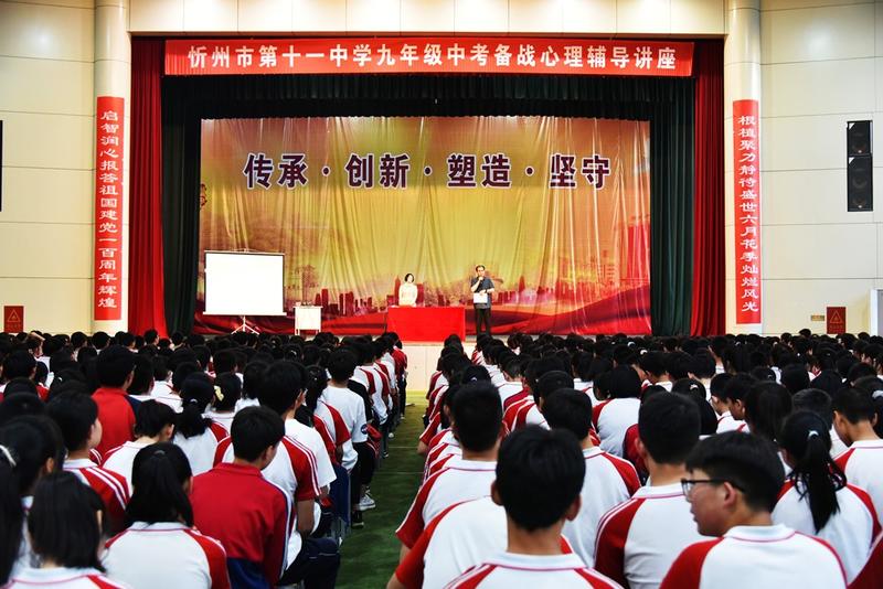 本網(wǎng)訊 6月3日晚,忻州十一中特邀資深心理專家張廣梅老師在文體苑為九年級(jí)學(xué)生做了中考備戰(zhàn)心理輔導(dǎo)講座。校長張?jiān)崎L主持講座并講話。