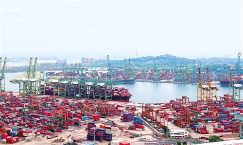 運作中的新加坡港,是世界最大的集裝箱港口之一。本報駐新加坡記者 劉 威攝