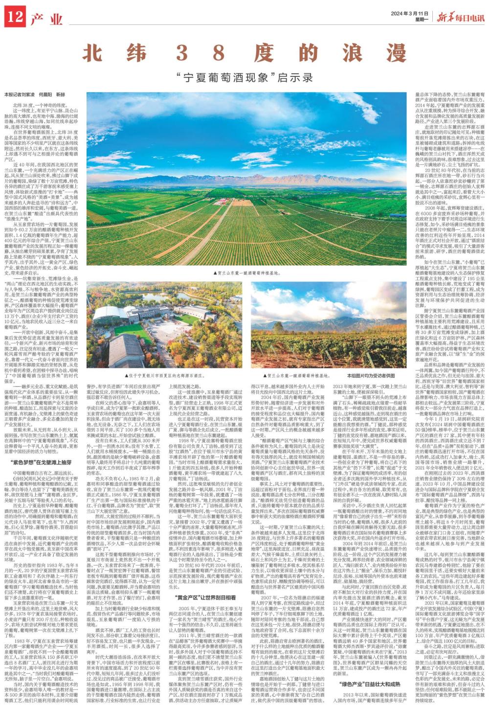 從玉泉營(yíng)農(nóng)場(chǎng)的一片葡萄園,發(fā)展到如今60.2萬(wàn)畝的釀酒葡萄種植開(kāi)發(fā)面積、1.4億瓶的葡萄酒年生產(chǎn)能力、超400億元的年綜合產(chǎn)值,寧夏賀蘭山東麓葡萄酒產(chǎn)業(yè)的發(fā)展歷程正如一棵葡萄藤,從抽出嫩芽到碩果累累,孕育了發(fā)展路上堅(jiān)毅不撓的“寧夏葡萄酒現(xiàn)象”。入乎其內(nèi)、出乎其外,這一黃金產(chǎn)區(qū)、綠色產(chǎn)業(yè)、紫色經(jīng)濟(jì)的開(kāi)拓史、奮斗史、崛起史,帶來(lái)諸多啟示。