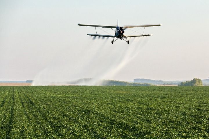 在北大荒集團(tuán)黑龍江五大連池農(nóng)場(chǎng)有限公司大豆地塊,農(nóng)用飛機(jī)在進(jìn)行“一噴多促”作業(yè)(2024年8月20日攝)。新華社發(fā)(陸文祥攝)